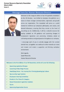 Welcome to our Human Resource Newsletter! Here, we’re all about connection, learning, and motivation. Each edition takes you through what’s happening in our workplace, from laws to how we’re building a great culture.